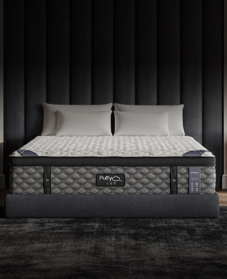 The Puffy Lux Hybrid Mattress is our bestselling hybrid mattress (memory foam + coils) with enhanced temperature regulation and a base of contour-adapt coils for additional support. It features an 8-layer design, a 12" profile, and a medium-plush feel.
